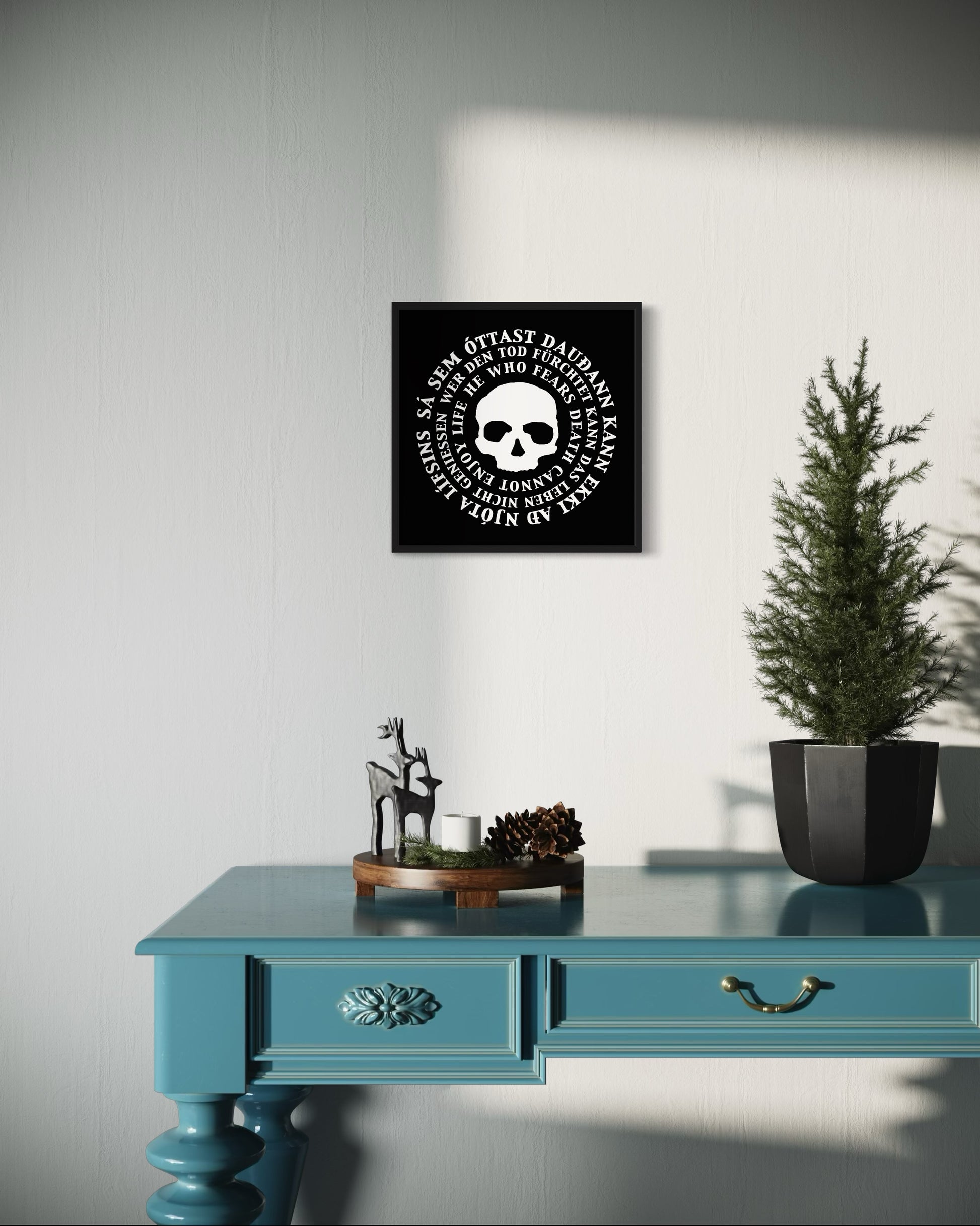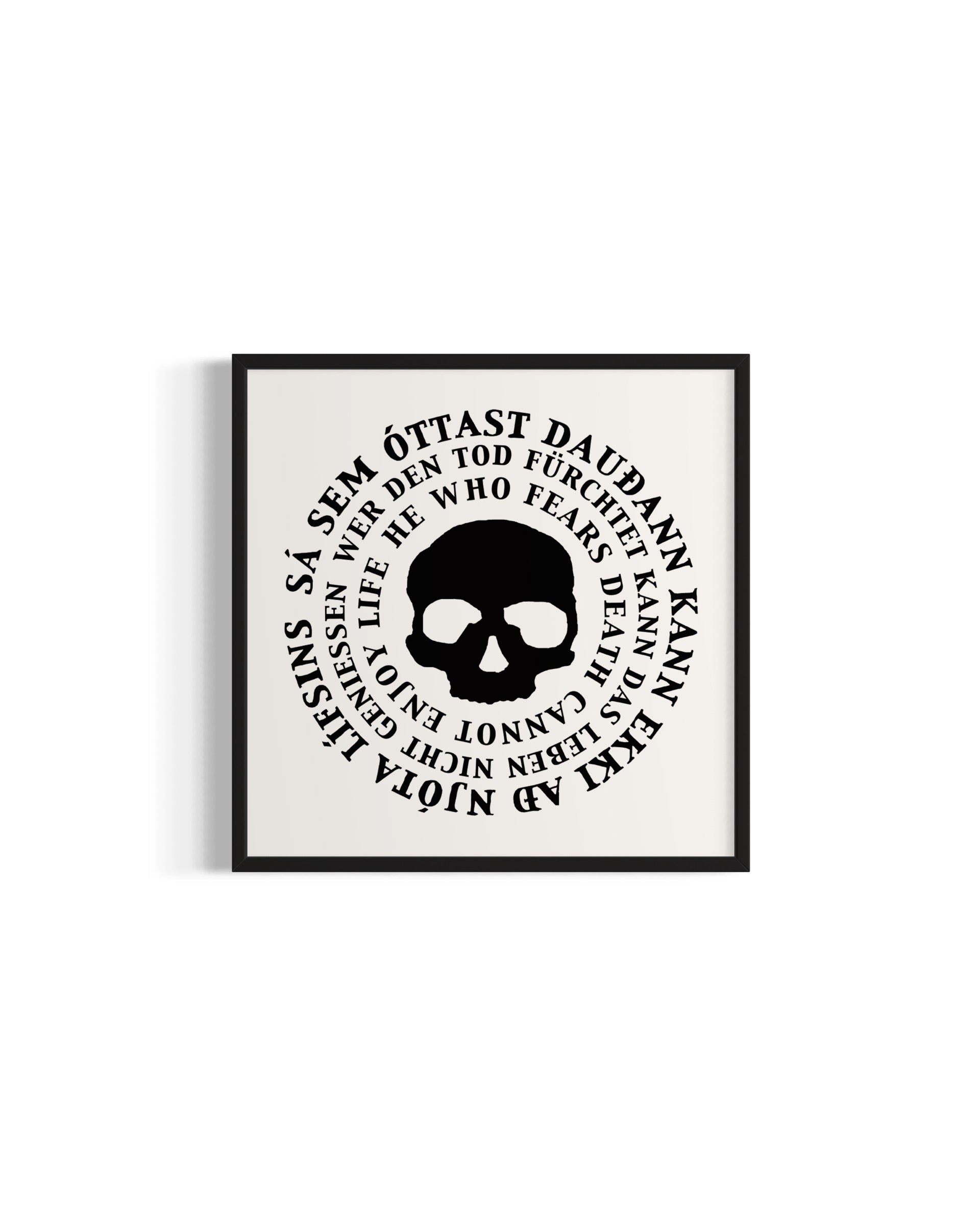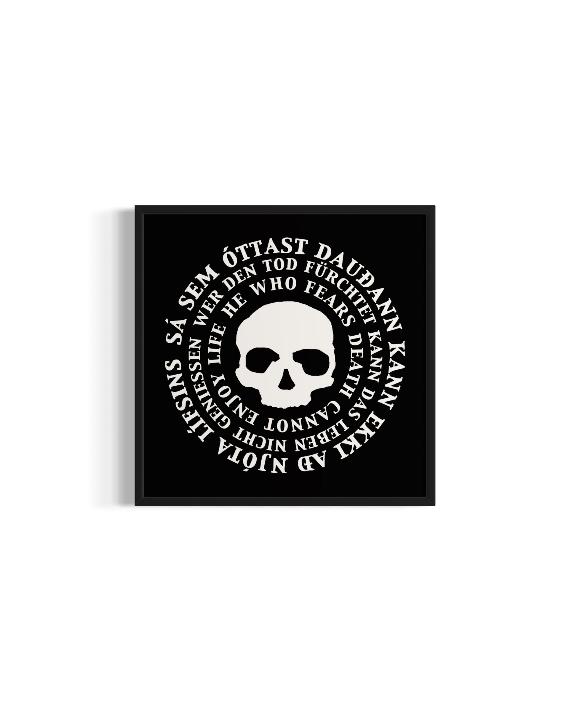 Vandað prent af hinu klassíska Dead Möntru lógói (textaverki) úr dauðakonseptinu eftir listamanninn Jón Sæmund.